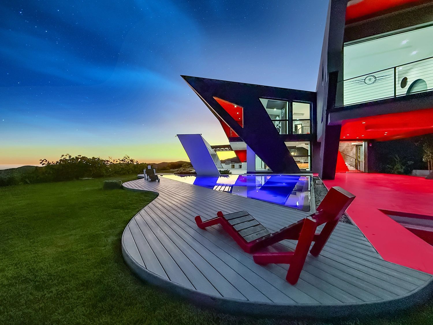 Soaring jetliners & sweeping views spanning Catalina to Santa Monica set the stage at The Aviator—a striking, architecturally significant Malibu escape by renowned designer Amit Apel. Perched at the end of a private road at the top of the world, this bold, modern sanctuary draws inspiration from the grace and precision of flight. A sculptural interplay of steel, crisp architectural lines, and signature circular windows create a sense of movement and lift, giving the residence its unmistakable presence. This one-of-a-kind retreat is equipped with a state-of-the-art Smart Home system that controls lighting, security, pool, and solar system—all automated & effortlessly accessible. Through the glass entry, the home unfolds into a dramatic open-concept living space defined by custom art, rich textures, & dynamic architectural forms. Floor-to-ceiling retractable walls vanish to frame endless ocean, canyon, and skyline views, blurring the line between indoors & out. The sleek European-inspired kitchen features premium stainless steel appliances, a six-burner gas cooktop & spacious center island with a breakfast bar with custom seating. A warm yet sophisticated ambiance flows seamlessly into the dining and family areas, where bold style and comfort unite. The main level also includes a bedroom with a circular window. Ascending the stairs, 2 luxurious primary suites await. The first boasts sweeping ocean & Malibu city vistas and an Art Deco–inspired bath with stunning glass-enclosed shower, soaking tub, dual sinks, & mountain views. The second primary suite mirrors the home’s refined design language, showcasing bold lines and vibrant accents, with panoramic views of Santa Monica and the Pacific. Its spa-like bath offers a deep soaking tub, dual sinks, and custom shower. A third “hidden” room serves perfectly as an office, lounge, or creative studio. The outdoor living spaces are a world unto themselves. A dramatic triangular zero-edge pool and spa appear to float above the horizon. The fully outfitted outdoor kitchen—complete with BBQ, grill, refrigerator & pizza oven—invites unforgettable alfresco dining. Additional highlights include a private putting green, oversized fire pit with flame wall, and an open-air movie screening area for evenings under the stars. Designed for both spectacular entertaining and self-sustaining independence, The Aviator offers the rare ability to live comfortably “off the grid.” This is more than a home—it is a statement of vision.